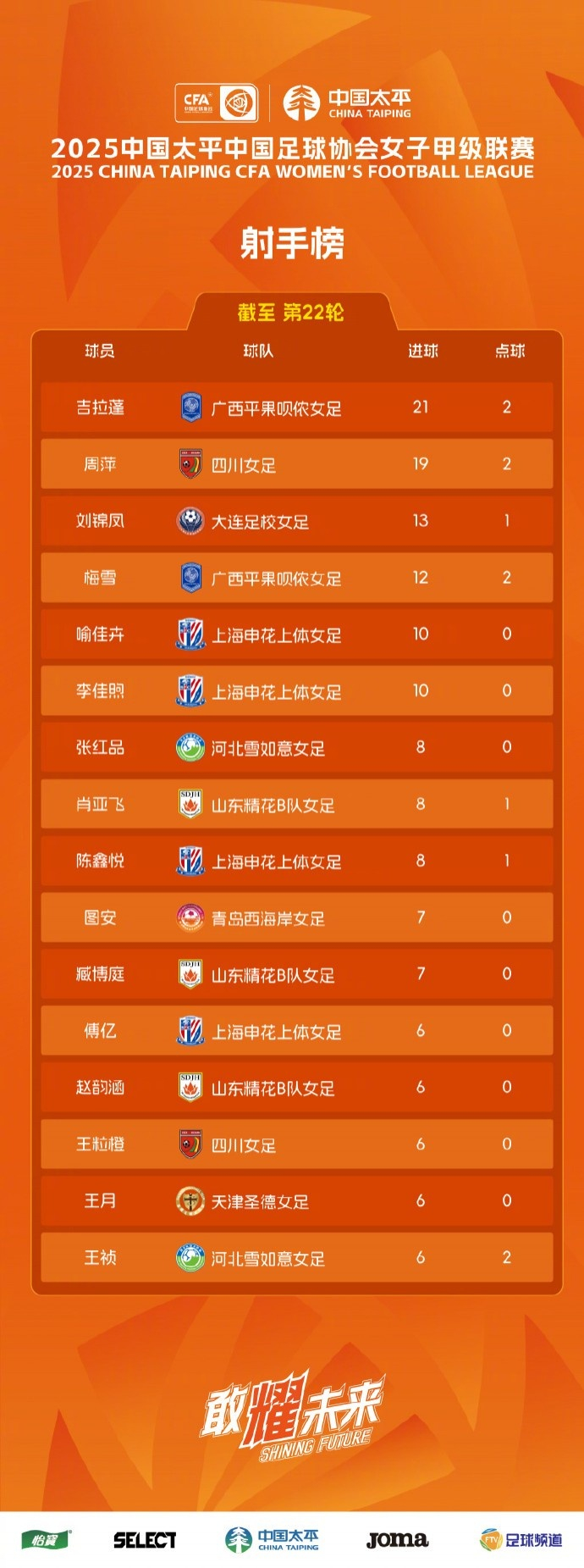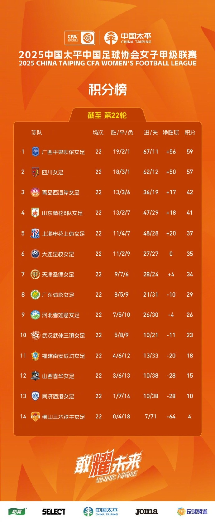 9月10日,2025中国太平中国足协女甲联赛(第四阶段)第22轮战罢。申花上体女足在本阶段比赛中绝杀领头羊广西平果呗侬、力克河北雪如意,负于积分榜第二的四川女足和第三的青岛西海岸,4战2胜2负,总战绩22轮11胜4平7负,积37分暂列联赛第五。